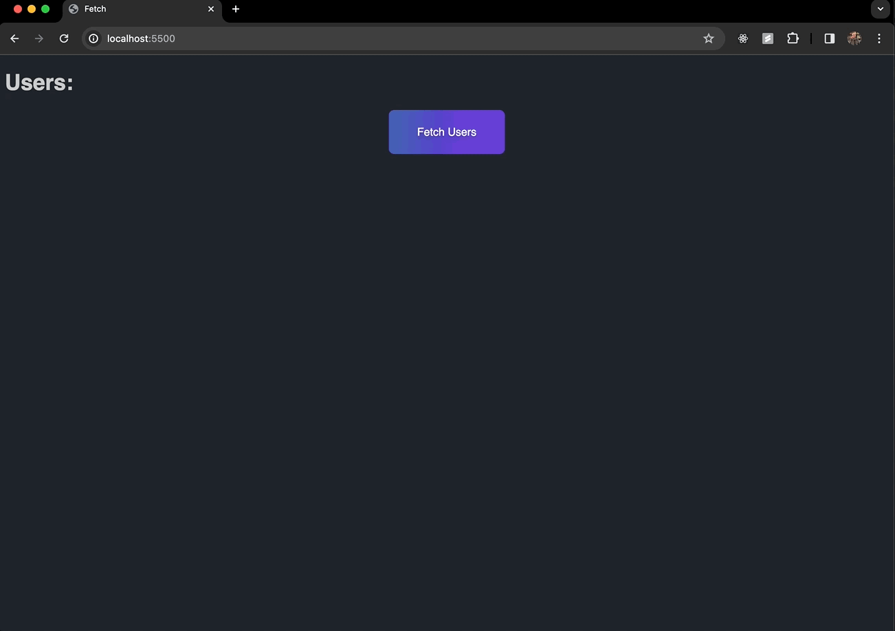 idand another event listener for the button click to call thefetchUsersfunction instead of just running thefetchUsersfunction when the page loads - we have one more trick up our sleeves. lets now hide the button once